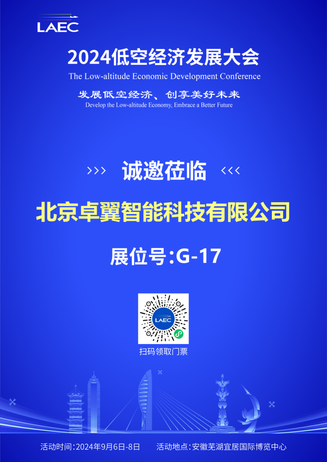 欢迎大家莅临卓翼智能展位(芜湖宜居国际博览中心二期二层 G-17)进行参观交流,我们诚挚欢迎您的到来!