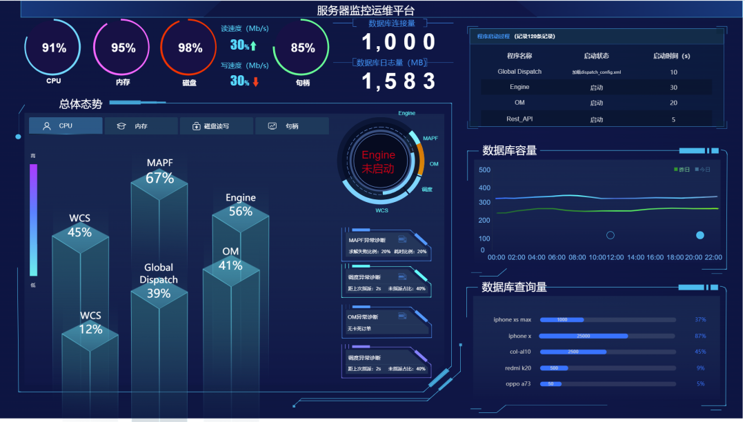 调度算法:实现单个场景中实时调度多类AGV超2000台,1秒内精准分配任务至单个AGV,实现资源利用最大化。