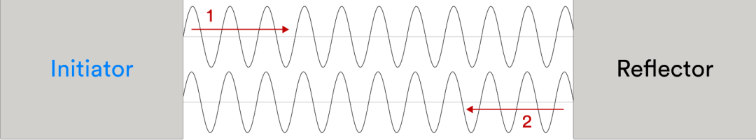 使用 PBR 时,启动器以给定频率 (f1) 向反射器发射信号。反射器向启动器发回信号,启动器在收到回复后,测量接收信号的相位,我们在此将其称为 (Pf1)。