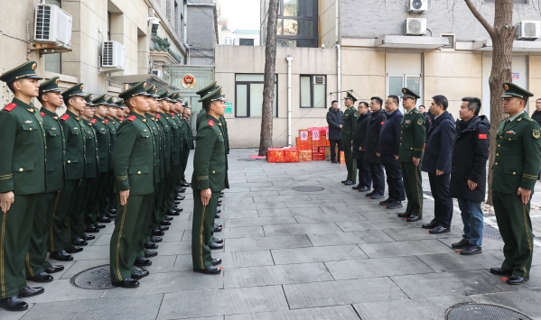 在新春来临之际,驻总部武警官兵依然坚守岗位,申彦锋代表集团公司党组向驻总部全体武警官兵送上新春祝福,向武警官兵代表赠送了节日慰问品。