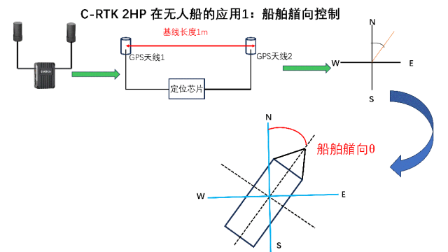 C-RTK 2HP 不仅能提供位置信息,还能提供精确的定向信息。这一功能相当于传统船舶的罗经,为无人船提供了稳定的艏向信息,确保了航行的稳定性。