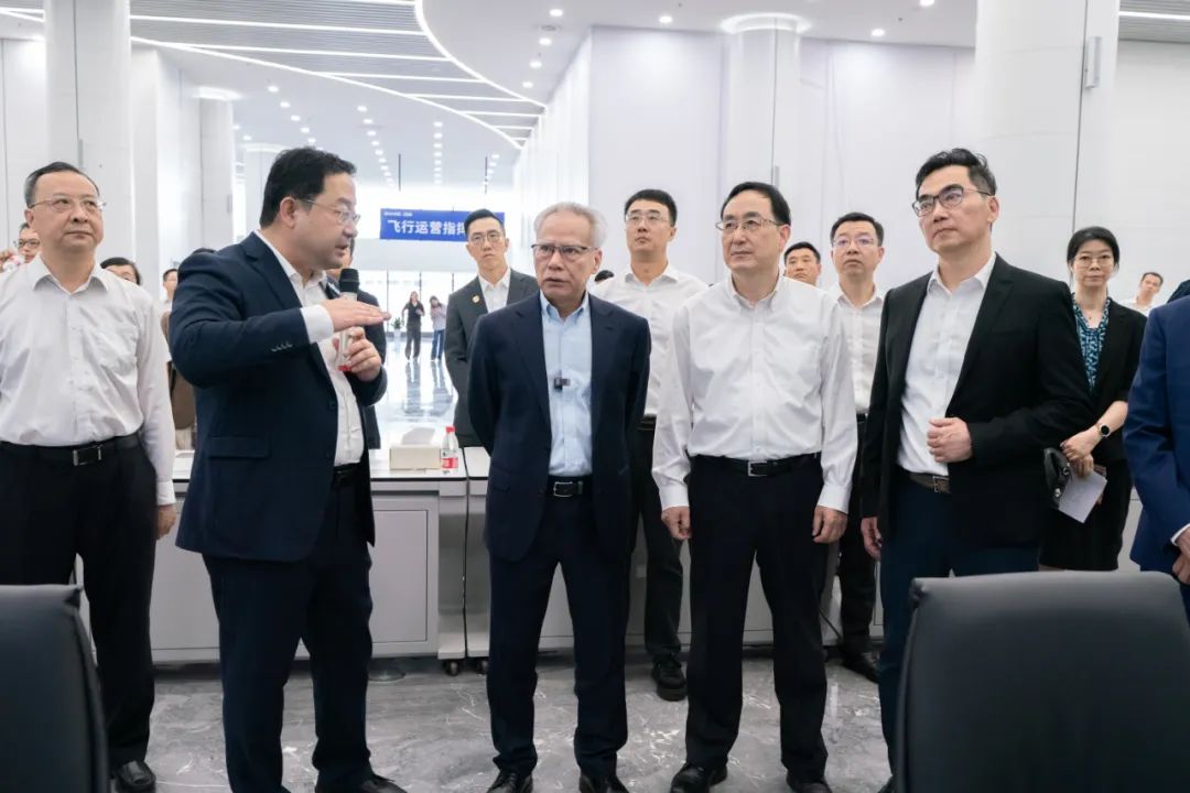 随后,岑浩辉一行来到亿航智能飞行指挥调度中心,了解公司围绕低空安全飞行运行方面打造的生态屏障和系统保障措施,重点针对低空经济基础设施建设、空中产业生态搭建、飞行指挥调度构建等话题与亿航智能高层展开深度交流。安全、高效、全面的指挥调度平台将对未来推动低空经济高质量发展起到至关重要的作用,参访团一行希望借助亿航智能在此领域取得的领先优势、积累的安全经验及建设的系统标准,可以为澳门特区未来发展低空经济提供坚实的数字底座,也能为澳门特区融入粤港澳大湾区低空经济发展助力加速。