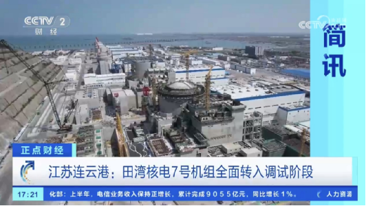 CCTV-2《正点财经》:田湾核电7号机组全面转入调试阶段