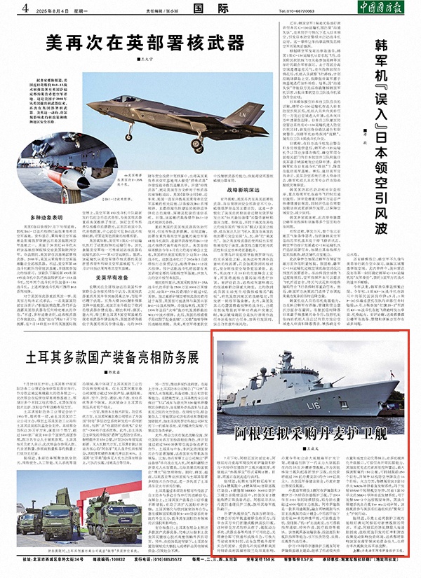 7月下旬,阿根廷国防部宣布,阿根廷对丹麦海军现役阿布萨隆级和伊万·休特菲尔德级护卫舰兴趣浓厚,希望能以“热舰移交”形式采购2艘。目前,两国正在就此进行谈判。
