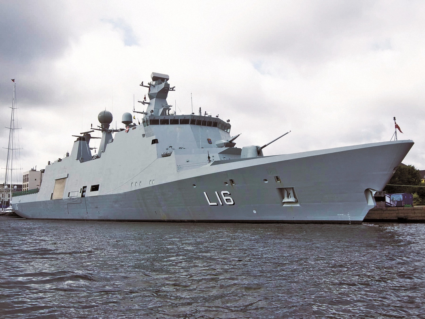 丹麦海军现役2艘阿布萨隆级和3艘伊万·休特菲尔德级护卫舰,于2004年至2011年间陆续服役,均为排水量超过6000吨的主力舰艇。阿布萨隆级是一款多用途舰艇,融合两栖舰艇与水面主战舰艇的设计理念,中后部甲板下设有长84米的弹性甲板,可装载直升机、登陆艇、“豹-2”主战坦克,也可搭载指挥通信、特种作战、医疗救助等模块。该型舰具备运输装备、投送部队和舰队指挥等能力,也可担负防空、反潜、反舰等作战任务。