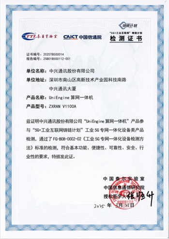 近日,中兴通讯的UniEngine算网一体机ZXRAN V1100A产品顺利通过第一批“5G+工业互联网”铸链计划产品测试,测试内容涵盖基础功能、操作便捷性、可靠性、安全性及行业适配性五大维度等方面。