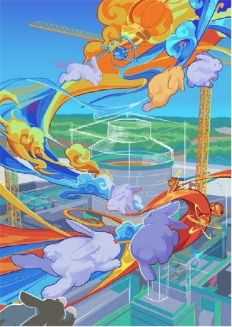 除了插画,孟芮妍还参与过科普类VR游戏、动画短片项目的创制。例如,视频《游戏里的中国超级工程》用3D建模的方式还原了华龙一号的建筑构造,孟芮妍参与其中。“团队建模花了一个月的时间,但让更多‘圈外人’了解到核电就很值得。”她说。