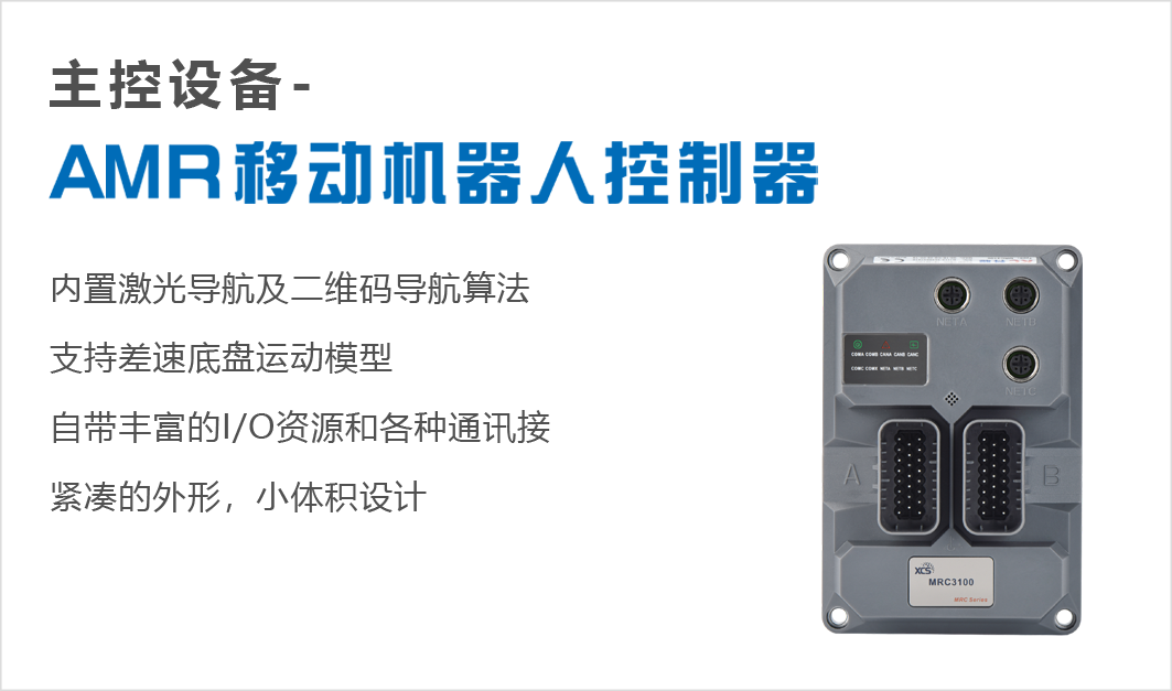 移动机器人所有功能都可以通过一个控制器实现,包括导航控制、运动控制、执行机构控制、安全功能控制、交互功能控制(灯、开关、手操器等)等各类功能。自带丰富的I/O资源和各种通讯接口。无论采用哪种通讯方式,485、232、CAN、以太网还是无线,甚至I/O的电气属性无论是NPN、PNP、源型还是漏型,通通可以直接接入。超高精度导航控制