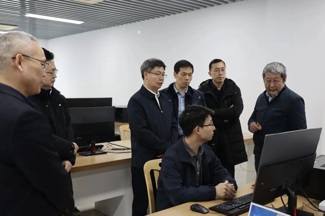 陈锡明一行实地调研了实验室数字化设计与验证平台、数字化性能评估平台调试现场,听取实验室情况汇报,并就2026年度重点工作与实验室领导班子成员进行座谈交流。