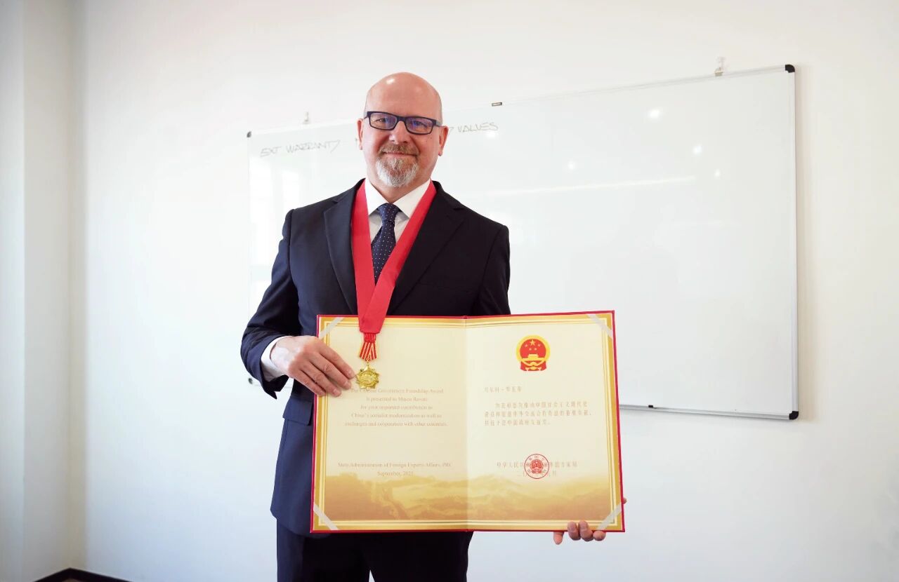 近日,2025年度中国政府友谊奖颁奖仪式在人民大会堂隆重举行,国务委员谌贻琴为获奖外国专家颁奖。中国船舶集团有限公司旗下中船邮轮新造船团队项目经理 MARCO ROVATI(马尔科・罗瓦蒂),因在推动中国邮轮产业高质量发展方面作出的突出贡献,荣获此项国家级荣誉。
