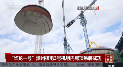 CCTV-4《中国新闻》:“华龙一号” 漳州核电3号机组内穹顶吊装成功