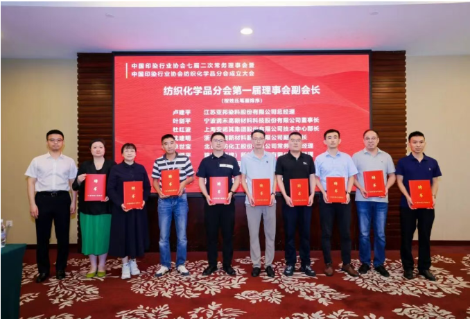 在成立仪式上,浙江传化集团副总裁、传化功能化学品事业部总裁徐迅荣膺中国印染行业协会纺织化学品分会会长一职。会议同期颁布了分会副会长、秘书长及理事的聘书。福建省纺织印染助剂制造行业协会第二届会长夏继平成功当选为该分会第一届理事会副会长。