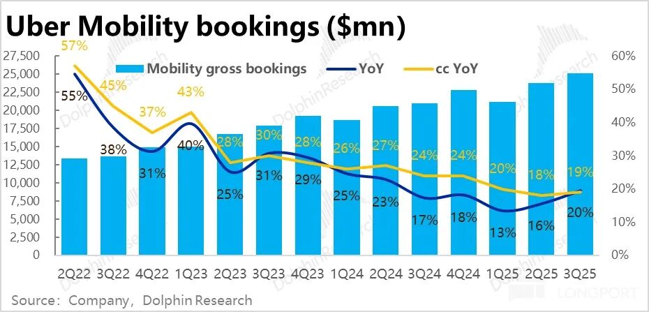 1、网约车还算不错,外卖则是 “实打实的” 强:本季网约车(Mobility)业务的订单额同比增长 20%,环比大幅提速 4pct。但剔除汇率的影响后,实际仅环比提速了 1pct 了。没有咋看之下那么强劲。