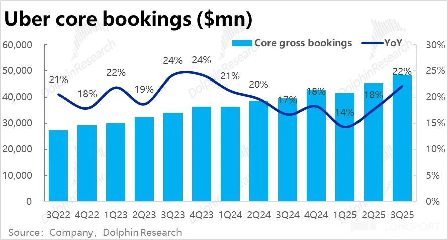 汇总以上外卖 + 打车的核心订单金额增速为 22%,同样提速明显且跑赢市场预期的 20%。