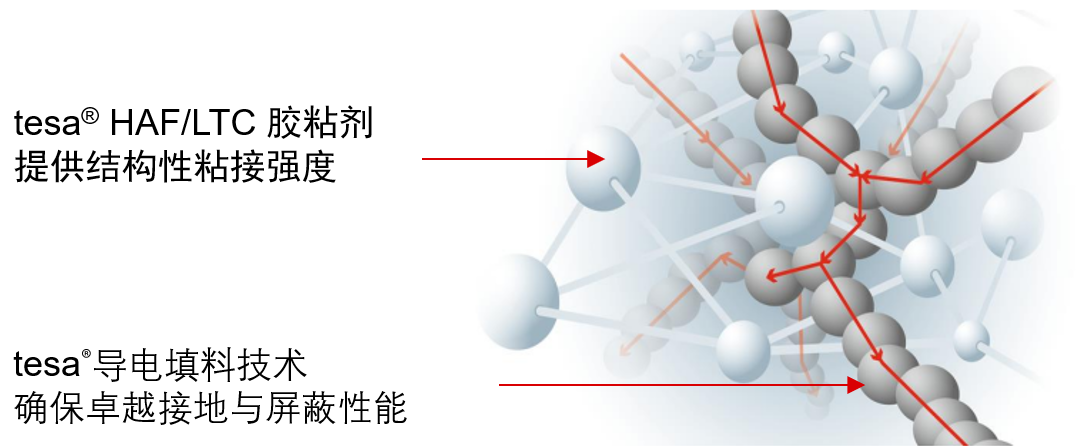 这类应用要求兼顾卓越的电气性能与粘接强度。以柔性线路板(FPC)的屏蔽与接地为例,在微型场景中,用于FPC导通的接触面积可低至2mm*2mm,紧密且牢固的贴合是实现FPC屏蔽与接地功能的前提。一般的导电胶带并不能确保在如此狭小面积上的可靠粘接,但tesa® EC-HAF却可以。