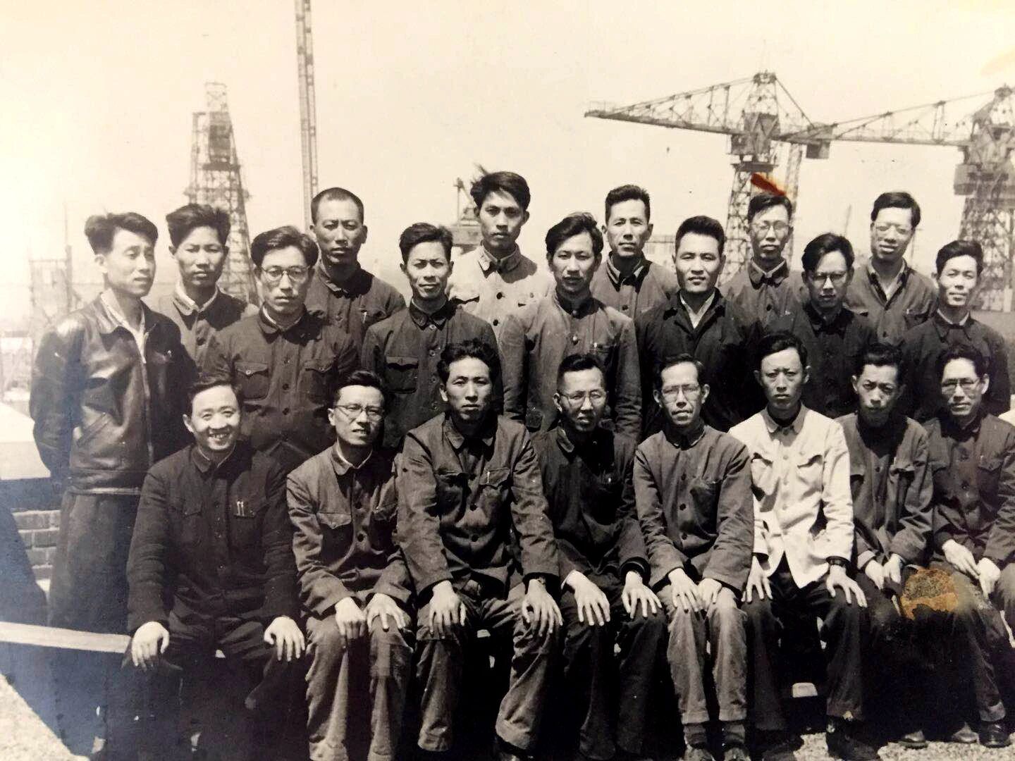 20世纪60年代沈闻孙(二排左三)与同事在造船现场合影