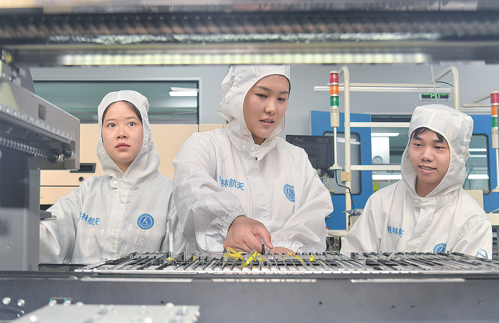 图为电装班员工在生产线上精心操作。詹勇强 摄