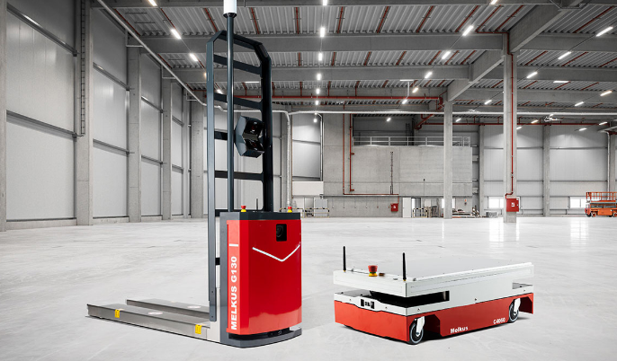 Melkus总部位于萨尔茨堡附近的Göming,是一家专注柔性AGV技术的专业厂商,其产品家族以“Agumos”平台为核心,覆盖托盘搬运、料箱运输、平台式小车等多种形态,特点是车体紧凑、转弯半径小、模块化程度高,适用于电子、精密制造、医药和电商仓储等多种内部物流场景。例如Melkus C4060平台AGV仅为40 cm×60 cm×21 cm、整机自重约29 kg,可在狭窄空间完成小件物料的自动搬运,而Melkus G130 2.0与Melkus F52等机型则面向欧标托盘及重载平台运输,普遍采用LiFePO₄高性能电池以兼顾续航与充电效率。