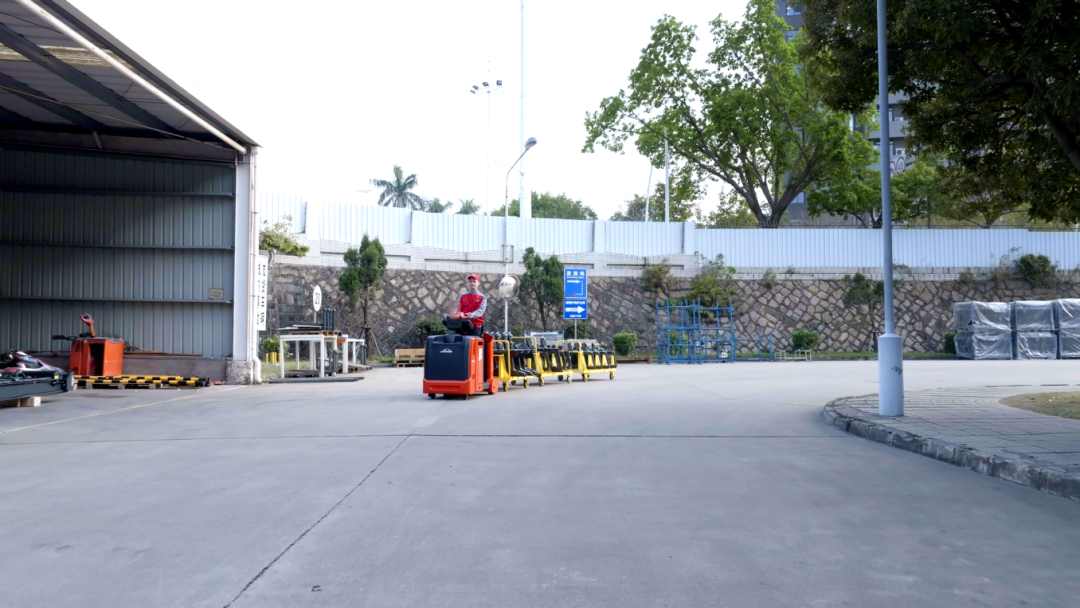■ 轻盈的外壳下,蕴藏着强劲内核,3kw大功率驱动电机,行驶速度最高可达10km/h;搭配原装进口控制器,停位精准,对接料框一气呵成,高效省心;超强稳定系统,动力强劲,最大牵引力可达3630N,一次可拖拉多个料框,无论大件小件都能装下,5吨以内货物转运毫无压力,路途虽远也能快速送达。